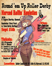 If you have any questions regarding being a vendor, volunteer, or a sponsor, please e-mail us at MercedRRDG@gmail.com or go check out our website at: www.mercedrollerderby.com
