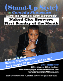 (Stand-Up Style) is a monthly comedy showcase that takes place the first Sunday of every month at Naked City Brewery & Taphouse in Greenwood, Seattle.