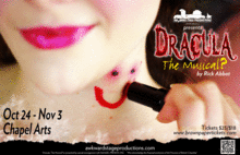 Before Edward and Twilight, there was the Count! Dracula is the original vampire: sexy, mesmerizing, frightening and.....musical? Awkward Stage Productions presents Rick Abbot's version of the classic Bram Stoker tale as a comedy musical with toe tapping tunes and plenty of laughs; it's a bloody funny farce! Join the transformation of the staid and uptight Mina Seward and her family as they quickly succumb to the Count's charms and vibrato. Riding to their rescue is the Indiana Jones of the spats set, Dr. Van Helsing. Adding to the chaos is the 'pet' inmate of the family asylum business, Boris, and the visiting actress, Bubu Padoop, who tries to seduce....well anyone really. Taking care of them all is the lovely and LUSHous young maid. Dracula: The Musical? is perfectly at home in the deliciously creepy Chapel Arts downtown, a refurbished vintage funeral home. The atmosphere is further charged with the sumptuous 'deconstructed' Victorian costumes designed by Debbie Wiecke. Directed by Andy Toth, choreographed by Cara Tench, and designed by Corwin Ferguson. Don't miss this Halloween treat!