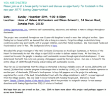 YOU ARE INVITED! Please join us at a house party to learn and discuss an opportunity for tzedakah in the new year, 5777: Sowing Opportunities!
