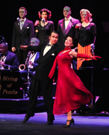 It's the music that moved a nation's spirit and helped win a war: a sentimental, romantic, nostalgic, jazzy and patriotic tribute to America's Swing Era. Company of 19 on stage: The Spectacular String of Pearls Big Band and six vocalist-dancers including some high flying swing dance couple.