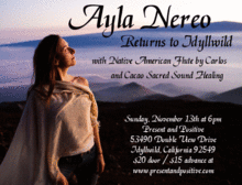 Also join us for our two openers featuring local Idyllwild artists. We will be starting with a Cacao Shamanic Sound Healing with Elaine, Micah and Trine as well as a Native American Sacred Flute performance by Carlos Reynosa. See you there!