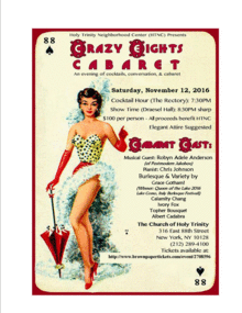 Musical Guest: Robyn Adele Anderson (of "Postmodern Jukebox") Pianist: Chris Johnson Burlesque & Variety by Grace Gotham (Winner: Queen of the Lake 2016 [Lake Comoo, Italy Burlesque Festival]) Calamity Chang Ivory Fox Topher Basquet Albert Cadabra