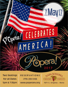 POpera! Celebrates America on May 7, 2017. An evening celebrating our American heritage thru Cole Porter, George Gershwin, and patriotic songs. Also on display will be Musical Theater, the true American art form.