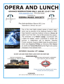 The Metropolitan Opera HD Live presents Kaia Saariaho's yearning medieval romance "L'Amour de Loin" (Love From Afar), having its Metropolitan premier this season. This all inclusive event includes a ticket to the HD performance, a delicious lunch and beverage. Gratuity included for $45, all alcohol separate.