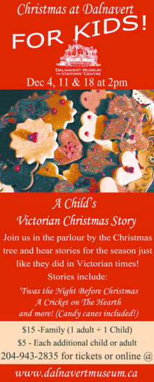 Join us in the parlour by the tree and listen to a short program of children's Christmas stories, and a look at what the Macdonald family Christmas would have been like.