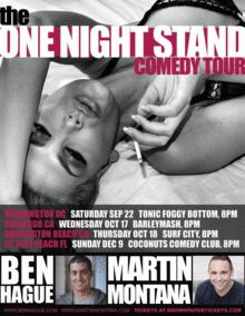 ONE NIGHT STAND COMEDY TOUR They are back! Last years stops included everywhere from Tampa to Long Beach and without question had the highest ratio of shots ordered per audience member. Having performed in clubs, colleges, and private events all over the country, Martin Montana and Ben Hague will be bringing their funny to the following cities:
