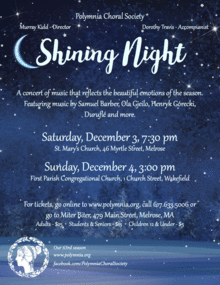 A concert of music that reflects the beautiful emotions of the season. Featuring music by Samuel Barber, Ola Gjeilo, Henryk Górecki, Duruflé and more.