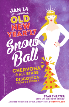 Dear friends, we are happy to announce Chervona's "Signature Party", 11th annual Old New Year Snow Ball - 2017 - Sat, Jan 14h, at Star Theater Portland!
