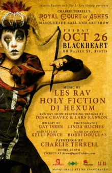 Austin Fusion & The J. Leo Group Present: The Royal Court of Ashes Masquerade Ball showcasing the art of Charlie Terrell and Linda Hughes, and featuring a full runway fashion show, live music, and DJ sets.