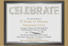 Join us as we celebrate Brad Friedmans 25th anniversary as a teacher, director and integral part of the SMHS Drama Department.