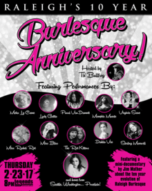 Can you believe it's been ten years since Raleigh's first burlesque show? Come celebrate with us! We have a mini-documentary featuring the area's original performers that highlights the evolution of Raleigh burlesque over the past ten years.