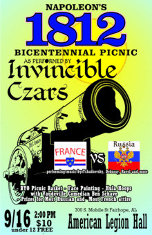 Austin, TX Austin's Invincible Czars, a high-spirited 6-piece band that combines nightclub sensibilities with nuanced composition, arrangement and performance, will perform their modernized version of Tchaikovsky most bombastic piece, 1812 Overture at a family-friendly event commemorating the events that inspired the piece. The event will be titled "Napoleon's 1812 Bicentennial Picnic: Russia vs. France (a battle of the classics)" and will mark the bicentennial of Napoleon's invasion of Russia in September 1812.