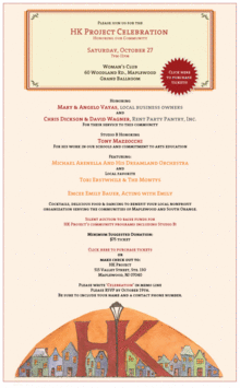 HK Project (HKP) which engages community through public service, charity, education and cultural enrichment is holding its first annual Fall Celebration on Saturday, October 27, 2012 from 7 to 11pm at the Woman's Club, 60 Woodland Road, Maplewood, NJ.