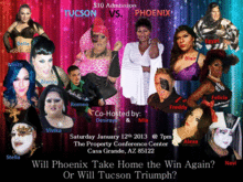 7 performers from Tucson will go head to head with 7 performers from Phoenix in a battle to collect the most tips. The city to collect the most tips will be declared the winner. All tips will benefit Central Arizona Rainbow Education and will help the group host their 5th Annual March for Equality in March.