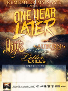 One Year Later(CI Records) In Other Words(Tragic Hero Records) Auburn(CI Records) Letter to the Exiles(Facedown Records) Maris Lane LOOKING FOR +1 MORE HARDCORE/POST HARDCORE BANDS EMAIL Chaliechanenter@gmail.com |$8 Presale |$10 Door| Jump Zone |Sicklerville, NJ