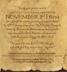 Swing your partner over to The Villa Chanticleer on Saturday, November 3rd at 6:00pm for a fun-filled evening!