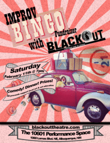 Join Blackout Theatre as we present a night of Improv Bingo! This fun event will give you the chance to win prizes all while watching an improv show. Tickets include dinner, drinks, and bingo cards to get you started!