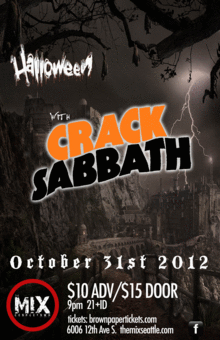 Join us for the hottest Halloween party in Seattle! The Mix presents and evening with Crack Sabbath, featuring: