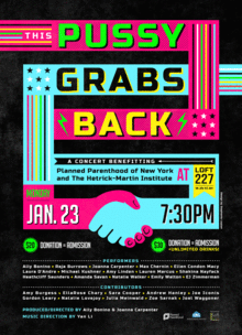 "This Pussy Grabs Back" is a one-night-only benefit to raise funds for Planned Parenthood of New York and The Hetrick-Martin Institute, two institutions that serve as safe spaces and havens for healthcare for millions of Americans.