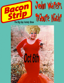 Sylvia O'Stayformore, local celebrity and founder of the outrageous Bacon Strip The Big Gay Variety Show, announces John Waters Tribute Night as the theme for her October show. On October 6, 2012, Bacon Strip once again will be on stage at Rebar at 10:30 p.m. (1114 Howell Street in Seattle). Sylvia will be bringing her trailer of misfits to the Rebar Stage.