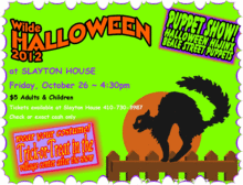 Wilde Lake Community Association at Slayton House in Columbia will hold their annual Halloween festivities on Friday, October 26, 2012 at 4:30pm. Join Beale Street Puppets for their ever popular puppet show "Halloween Hijinx" in the Slayton House Theatre. Then join us for trick or treating in the village center. Be sure to wear your costume for this fun Halloween event kids love it! This event is for children ages 3 through 10. Tickets are $5 for children and adults. Tickets may be purchased at Slayton House. Call 410-730-3987 or email wlevents@columbiavillages.org for more information.