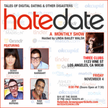 A monthly comedy storytelling show about dating in the digital era. The show features world class, award winning comics and storytellers who are willing to share the details of their adventures in searching for love in the modern age. It is hosted by actress and comedian Linda Bailey Walsh.