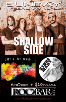 Rockbar inc. presents Shallow Side with special guests Jane N' The Jungle Stone Mary 6pm Doors $10presale 21+ ViP Table Res TEXT 480-331-9190 www.RockbarScottsdale.com
