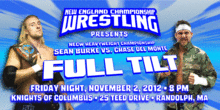 NECW presents FULL TILT on Tour, Part 1 NECW debuts in Randolph with part one of the FULL TILT Tour taking place on Friday Night, November 2, 2012 with an 8 PM bell time at the Knights of Columbus, 25 Teed Drive, Randolph, MA.
