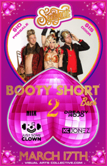 BOOTY SHORT BASH 2 Doors at 8pm - Show 9pm 21+ Valid ID Required $8 until 1/25 $10 presale - $15 Doors tickets at http://bootyshortbash2.bpt.me/ -------------------------------------- Raid your closets, open those wardrobes, break into the undie drawers and grab some booty shorts. Booty Short Bash 2 is coming for you with the solo mission of keeping your booty shaking all night long!