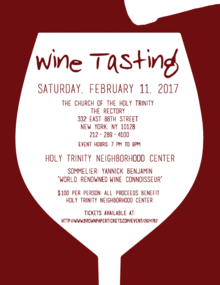 Paired with great company and conversation, in the Rectory of the Church of the Holy Trinity, a J. Stewart Barney-designed landmark Manhattan home completed in 1899, world renown wine expert Yannick Benjamin will guide you through the Whites, the Reds, and the Roses.
