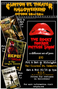 Film times are: "Some Guy Who Kills People"- 7PM "Repo: A Genetic Opera" w/ The Oregon Donors -9PM "The Rocky Horror Picture Show" w/CSC- Midnight