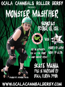 Come cheer on The Ocala Cannibals Roller Derby team as they continue the 2012 season with our next home bout against the Vandalettes of Vero Beach. Doors open at 6:00 and the bout starts at 6:30. The entry fee is $8 in advance and $12 at the door and as always 12 and under are free. Come cheer on your favorite derby girls as they continue with their greatest season to date.