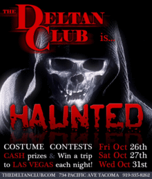 Join the Deltan Club on Friday October 26....Saturday October 27.....and Halloween Night! October 31, 2012 for a HAUNTING EXPERIENCE!