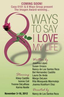 After sold-out shows at CASA 0101 Theater and the Los Angeles Theatre Center in 2009, "8 Ways to Say I Love My Life" will return to the new CASA 0101 Theater for a three-week run: November 3 - 18, 2012 in celebration of the publication of the book by the same name. "8 Ways" is a collection of monologues written by eight women and based on their lives. The "8 Ways" theater production inspired audiences during its successful runs and was named "Editor's Hot Pick" by LatinoLA.com and won the 2009 Imagen Award for Best Live Theatrical Production.