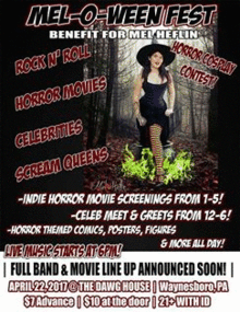 A benefit for one of our favorite area scream queens MEL HEFLIN who lost her mother tragically. All proceeds go to her mom's memorial bills.