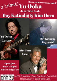 **Japanese Jazz guitarist, Yu Ooka has worked with many jazz legends such as Billy Mitchell, Barbara Morrison and many more. Yu has just released his first CD features his original compositions along with the LA's best includes Eric Marienthal, Michael Paulo, Patrice Rushen, Boy Katindig and more. His music has been receiving many great reviews and played on radio stations in UK and US.