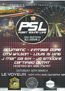 Puget Sound Live (PSL) features Independent Dope Music from All Over Highlighting Artist from the Northwest. PSL will Host showcases throughout the Puget Sound giving a platform for Independent artist to showcase their talent. Stay tuned for upcoming shows and cities near you.