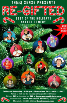 Returning sketches include "Prettiest Pilgrim Pageant", "Gift of the Zombii", "A Very (sic) Halloween Carol", and many more. We are also bringing back our holiday parody songs, "Santa Claus in Comin'", "Jinguo the Chinese Reindeer", "Mama Christmas", all the rest that will make change the way you hear muzak when you're shopping this season!