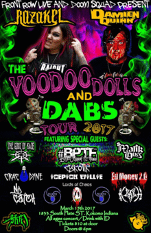 Front Row Live Presents the Voodoo Dolls and Dab tour 2017 featuring Razakel , Damien Quinn with special guests BPTF , The Godz of Chaos , and Majik Duce ,CracOdyne , Ed Money 2.0, No Catch, Icepick Willie, Lords of Chaos, Cykotik, Krazh....