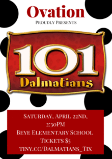 Embark with us on a spot-tacular journey like no other in Ovation's Spring production of 101 Dalmatians KIDS! This jazzy show is sure to have your feet tappin' and your tail waggin' from start to finish. This 30 minute show is the perfect way to keep your little ones entertained and inspired!