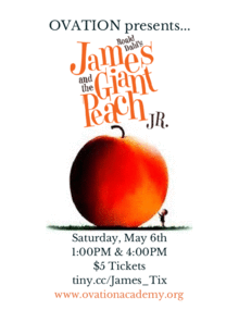 Embark with us on a fantasmarrific journey like no other in Ovation's Spring production of James and the Giant Peach! This jazzy show is sure to have you on the edge of your seat and wanting more. This 45 minute show is the perfect way to keep your whole family entertained and inspired!