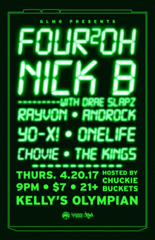 You know the date. You know you wanna party wit us. Kelly's Olympian is helpin' us host FOUR2OH!!!