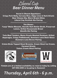 A great night of food and tastings brought to you by Seasons and Liberal Cup Breweries