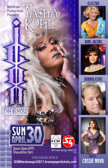 Tasha is doing it again! Bringing you the best in female impersonation with amazing talents. This time featuring Electra from Ft Lauderdale, a nationally recognized illusionist whose Bette Midler will astound you, Dina Jacobs, a true icon from Houston, Texas and the live talent of Bubbalicious whose power house voice will bing you to your feet and returning by popular demand emcee Cassie Nova. These ladies are truly exceptional talents, and you won't wanna miss them!!!!!!