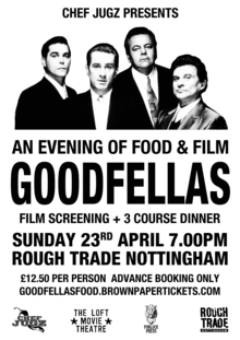 The ticket price includes a screening of Martin Scorsese's gangster masterpiece GoodFellas, and a three course dinner inspired by the movie's many key scenes of social eating and Italian home cooking.