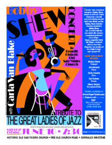 A perennial favorite, Bobby has given many concerts at the Old Church and states, "I am more than happy to help raise money for this great icon of Corrales and home to so many community events." He adds, "This is one great facility that deserves a whole lot of love and respect."