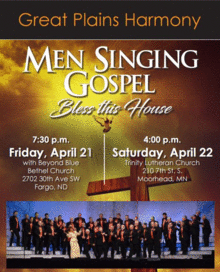 Spend the evening with Great Plains Harmony, it's quartets and our Special Guest on the Friday show Beyond Blue. The concert will feature some of your favorite Gospel Songs sung in the Acapella style.