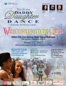The Daddy Daughter Dance guarantees a memory that will last a lifetime. Join us on June 17th, from 6pm to 9pm at the Hilton City Line Avenue Hotel, hosted by Daddy University and the School of Parent Education. Daughters of all ages will dance the night away with the man of their dreams. Fathers and father-figures join us for a relationship that will last forever. Purchase tickets here or call Brown Paper Tickets at 1800-838-3006.
