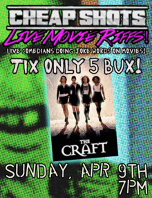 Cheap Shots is a group comprised of KC comedians, paunchy miscreants, and gutter weirdos who love crappy movies and making jokes at them, LIVE! For your pleasure!